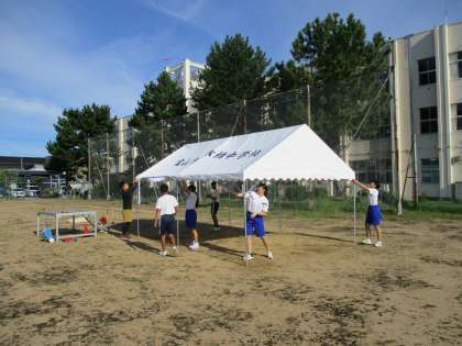 体育大会練習 公開日 2022/09/05 更新日 2022/09/05 最近の水中の様子 体育大会実行委員のメンバーは、本部テント設営や放送機材の準備に取りかかります。 午前中は全体練習と応援合戦の練習を行います。気温が高いのでこまめに水分補給しながら活動します。