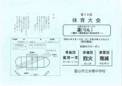 9/10(土)は、第76回体育大会を開催(雨天順延)します。
