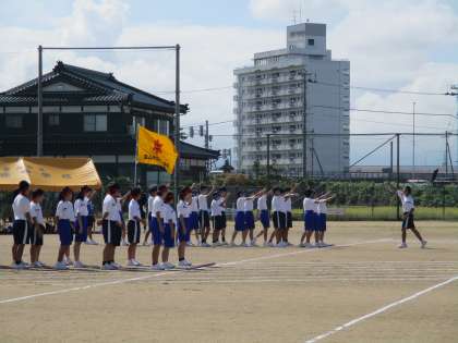 体育大会 台風の目(その1) 公開日 2022/09/13 更新日 2022/09/13 最近の水中の様子 1学年の学年種目「台風の目」スタート前に、各団オリジナルのやる気を高めるアツいかけ声で盛り上がりました。