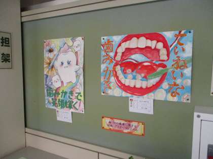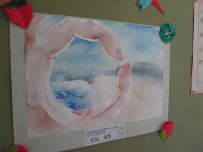 美術部の作品を展示しています。 絵画展での入賞作品です。 構図のアイディアや色調がすばらしいですね!