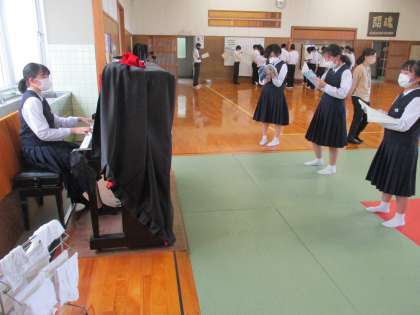 合唱コンクールに向けて、放課後の合唱練習が始まりました。指揮者、伴奏者、パートリーダー、実行委員が協力して練習計画を立てました。コンクールまで一致団結してがんばります!