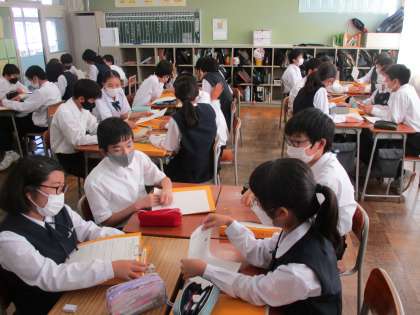 1学年 総合的な学習の時間 公開日 2022/10/01 更新日 2022/10/01 第1学年 1学年は、総合的な学習の時間を通して「福祉体験学習」に取り組んでいきます。 今日はオリエンテーションで、今後の学習の見通しを確認したり、「福祉」についての考えを共有したりしました。 また、「幼い頃についてのインタビュー」を家族に行い、そこで聞いた内容を班で発表し合いました。インタビューを通して分かったことや感じたことを、これからの福祉体験学習に生かしていきます。