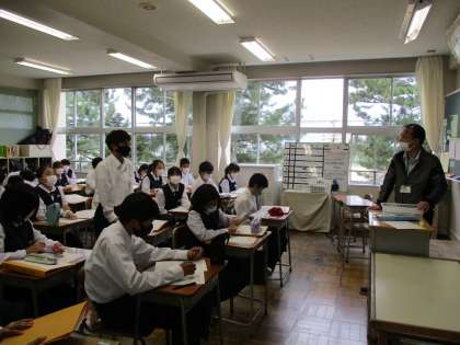 クラスメイトの発言に真剣に耳を傾けていました。また、振り返りの時間には、教材を読む前と後の考えの変化に気付く生徒がたくさんいました。
