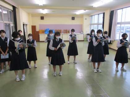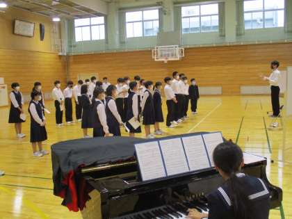 クロムブックのカメラ機能を利用すると、自分たちの合唱を客観的に見ることが簡単にできます。よりよい合唱になるように、録画したものを見て、新たな改善点をチェックしています。