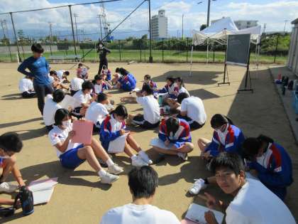 2年保健体育 教育実習生も参加しています。母校の後輩と仲良く学んでいます!