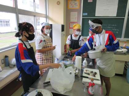 2年家庭科 調理実習をしています。