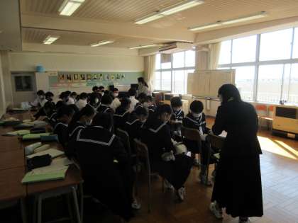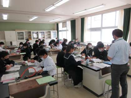 <写真上>1年理科 <写真中>2年音楽 <写真下>2年英語