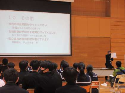 今日は3学年生徒と保護者対象の進路説明会を行いました。進路選択に関するスケジュールや例年と大きく変わった変更点等を説明しました。いよいよシーズンが始まります。将来の進路についてじっくり考えていきましょうね。心配なことや不安なことがあれば相談してください。しっかりサポートしていきます。