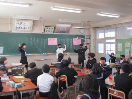 先週行った学年集会で紹介された前期の改善ポイントについて、各学級でどのような取り組みをしていけばよいか、具体的なアイディアを出し合いました。学級討議で出されたアイディアをもとに、学年生徒会で企画を立て、1学年全員で実践していく予定です。当たり前のことを当たり前に行える1学年になれるよう、意識を高めていきたいですね。