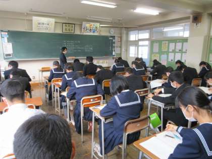 中教研学力調査1日目 今日は3教科に取り組んでいます。