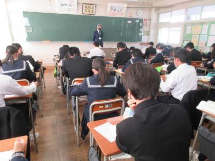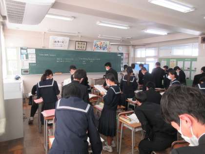 <写真上>2年国語 文法について(活用形) <写真下>2年英語 将来の夢の英作文の読み合い