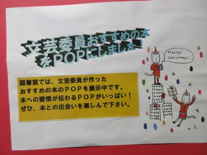 学校のようす 公開日 2022/12/06 更新日 2022/12/06 最近の水中の様子 文芸委員会の活動では、生徒の読書習慣の定着を目的に図書紹介を行っています。おもしろい本がたくさんありますので、ぜひ図書室を利用しましょう!