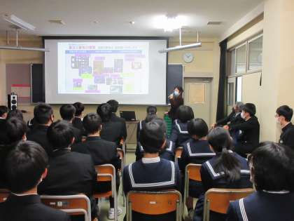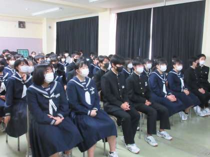 本日(12/9)の5時間目に、学校薬剤師の勝島先生をお招きし、薬物乱用防止教室を開催しました。体の回復を助ける薬も、過剰に摂取すると薬物乱用になるということを学びました。また、違法薬物の使用がなぜ禁止されているのかを分かりやすく説明していただきました。