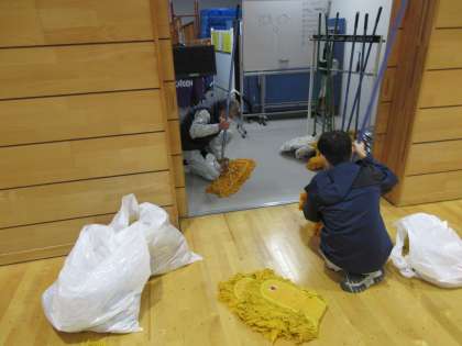 体育館のモップを定期的に交換しています。用務員のみなさん!いつもメンテナンスありがとうございます!