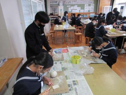 学校のようす 公開日 2022/12/15 更新日 2022/12/15 最近の水中の様子 <写真上>3年数学 円周角の定理 <写真中>3年数学 円周角の定理 <写真下>1年美術 リンゴをテーマにした塑造