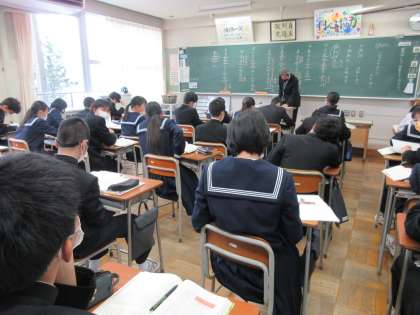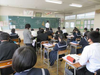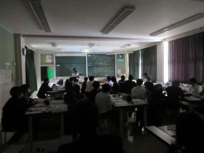 <写真上>3年数学 接線の定理 <写真中>3年理科 天体(日周運動) <写真下>2年国語 文法について