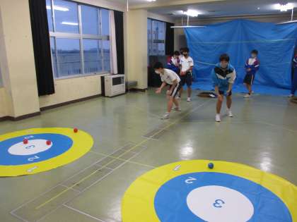 富山市よりボッチャ用具セットが貸出されました。東京パラリンピックでも日本人選手の活躍もあり有名になりました。実際にやってみるといろいろコツがあることが分かったようです。簡単そうに見えて奥が深い競技のようです。今日はソフトテニス部のメンバーが参加してくれました。