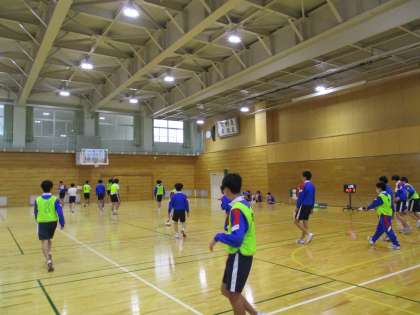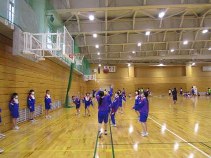 3年生は保健体育でバスケットボールをしています。外は寒いですが暑いゲームを繰り広げています。