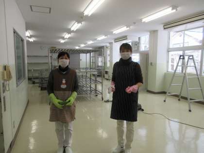 学校のようす 公開日 2022/12/23 更新日 2022/12/23 最近の水中の様子 いつも配膳室にて給食準備を担当されているお二人です。今学期は昨日が給食最終日でした。昨日の後片付けに来た給食係のある生徒から「今学期ありがとうございました!」と、律儀にあいさつされたと教えていただきました。今日は配膳室の清掃作業をされています。来学期も宜しくお願いします。