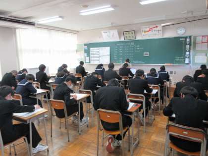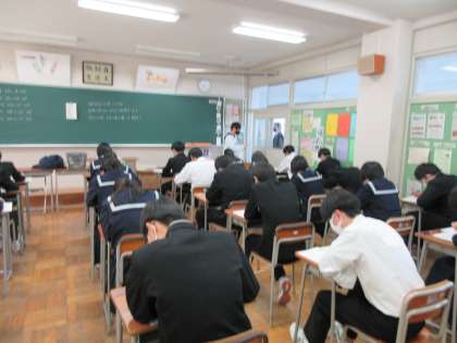 今日は3年生の登校日です。朝から確認テストを行っています。今週末からいよいよ本格的に入試がスタートします。進路決定に向けて頑張っています。