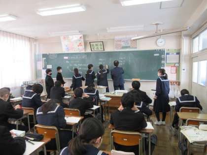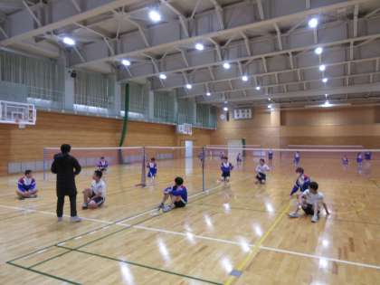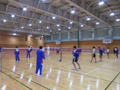 <写真上>1年理科 力のはたらき <写真中・下>2年保健体育 バドミントン