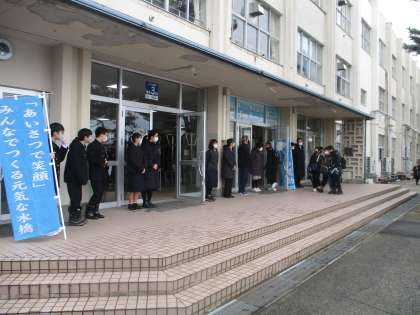 今朝のあいさつ運動のようすです。