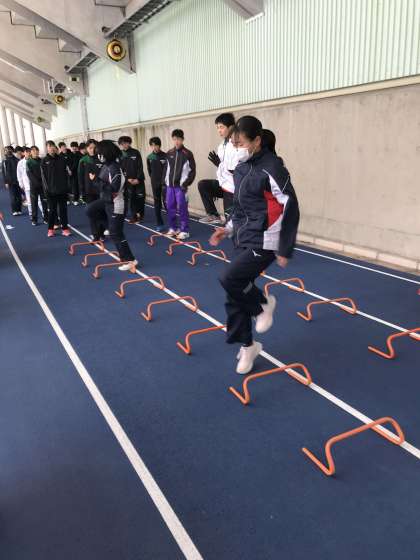 来シーズンに向けてミニハードルを使って姿勢を確認したり、走り込みを行いました。