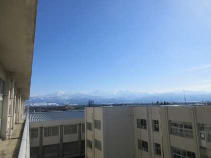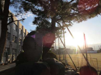 今朝の朝陽のようすです。日中も学校から眺める立山連峰の姿が格別でした。