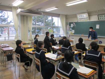 本日の5・6限に「働く人に学ぶ会」を実施しました。6つの事業所から講師の方々に来校していただき、仕事のやりがいや、その仕事に就こうと思ったきっかけ、中学生の間に頑張っておくべきこと等、詳しくお話を聞くことができました。