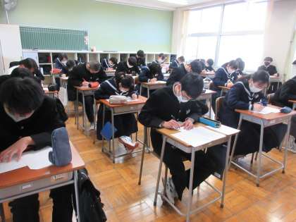 3年生は、朝から卒業式や同窓会入会式の流れの確認をしました。別れの歌の練習では、3つのパートが合わさり、きれいなハーモニーが生まれていました。4時間目は、手紙を書きました。誰に宛てた手紙でしょうか?真剣なまなざしで書いていました。