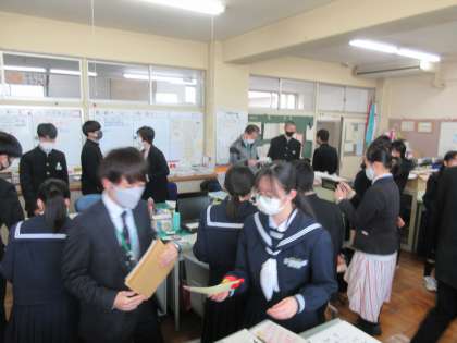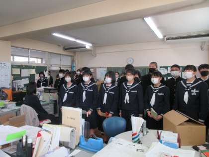 職員室では卒業生代表より教職員へ謝辞が伝えられました。この日のために作成したメッセージカードをお世話になった先生へ手渡しました。