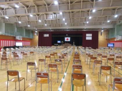 1・2年生の生徒達のてきぱきとした素早い動きで卒業式準備が整いました。明日の天候は晴れです。卒業生の笑顔あふれる門出の日となることを願っています。