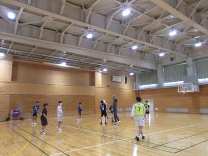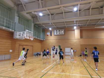 男子バスケットボール部は、卒業生と在校生が合同で練習を行いました。先輩が考えた練習メニューをこなし、最後は試合を行いました。卒業生から在校生にアドバイスを伝えたり、上手くできたときには「ナイス!」と声をかけてもらったり、とても充実した練習になりました。