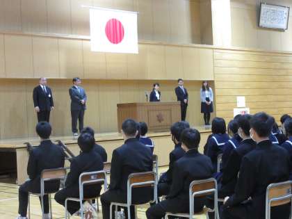 着任式では新しく5名の先生方が紹介されました。その後、新2・3年生による始業式を行いました。校長先生の式辞では「まずは、自分のよいところや自分らしさを見つけてほしい。そして、見つけた自分のよさや自分らしさを、いろいろなことに挑戦して伸ばしていってほしい。」というメッセージを投げかけられました。ピンと伸びた背筋と真剣な生徒のみなさんのまなざしが体育館の空気を凜とさせていたように感じました。明日は午後から入学式です。水中生全員で新入生を温かく迎え入れましょうね!