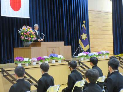 <写真上>育友会会長より祝辞