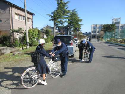 今日は登校時に自転車通学生を対象に自転車点検を行いました。安全に登下校しましょう!