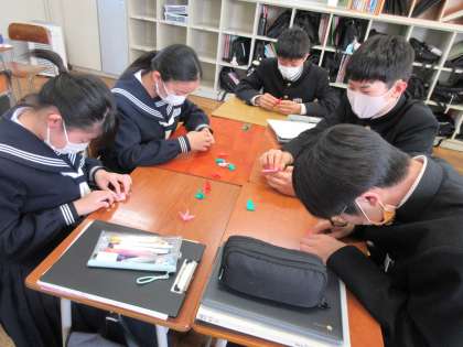 班のメンバーで協力しながらコースを決め、自分の課題について調べ学習をしています。平和学習の一環として、千羽鶴作りも進めています。しっかりと事前学習を行い、実りのある修学旅行にしましょう。