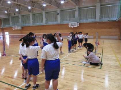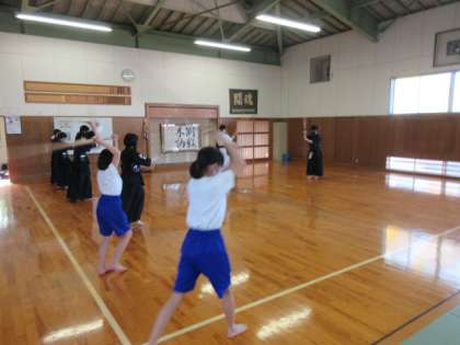 <写真上>バドミントン部 <写真中>バスケットボール部 <写真下>剣道部