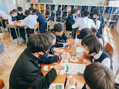 授業の様子 公開日 2023/05/10 更新日 2023/05/10 最近の水中の様子 2年社会科の授業で自然災害について学びました。災害シミュレーションを通して、実際に災害に遭ったらどのような対応が必要になるのか、班員と相談しながら考えることができました。