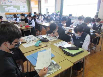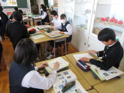 3年美術 一点透視図法について説明聞き、定規を使って作図に取り組みました。