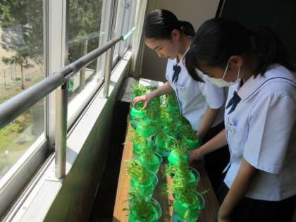 学校のようす 公開日 2023/05/17 更新日 2023/05/17 最近の水中の様子 <写真上>2年生 家庭科水耕栽培で野菜を育てています。 <写真中>美術部 生徒玄関前で水墨画作品を展示しています。 <写真下>至誠館の屋根を補修しています。