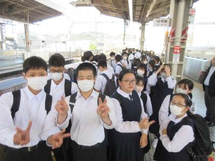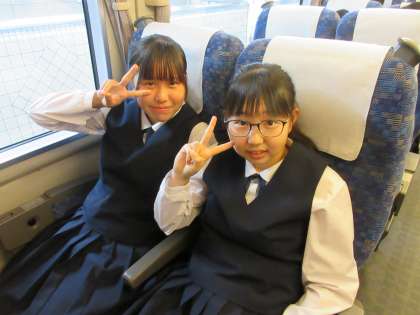 京都班別学習の後に広島まで新幹線で移動しました。多くの生徒が新幹線に初めて乗るようでした。京都で歩き疲れて寝ている生徒も何人かいました。