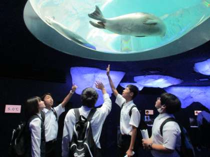 海遊館を回っている様子です。1時間だけの滞在でしたが、1日目の反省をいかし、時間いっぱい見学を行っていました。