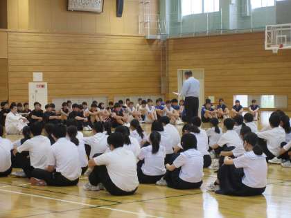 壮行会のようす 公開日 2023/06/08 更新日 2023/06/08 最近の水中の様子 <写真上>選手宣誓 <写真中>校長先生のお話 3年生はこれまでの集大成となるように頑張って欲しいです。 仲間と協力して充実した大会にしましょう!