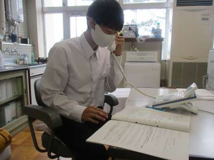 電話を掛ける前の生徒たちは、緊張していました。電話をかけ始めると、生徒たちは日ごろの成果を発揮して、臨機応変に対応していました。