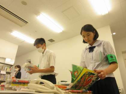 14歳の挑戦 1日目 公開日 2023/07/04 更新日 2023/07/04 第2学年 【富山市立図書館 活動の様子】 図書館では、本の返却について活動しました。 返却された本の中身を確認して、本館や別館で借りられた本を専用の機械で確認しました。 図書館内の本の多さに圧倒されながらも、二人で協力して取り組めました。