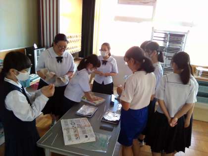 2年生は14歳の挑戦で不在なので、1年生と3年生が力を合わせて活動しました。やけどをしないように注意したり、すてきな作品になるようにお互いが声を掛け合ったりして、オリジナルプラ板を制作できました。