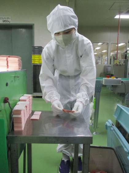 服装が大人の方と同じなので、とても中学生には見えない存在感で、黙々と真剣に作業していました。流れ作業なので、止まる事なく1日立ちっぱなしです。