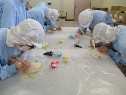 生徒たちは、従業員と同様な活動を体験していたようで、働く大変さや楽しさを味わっていました。細工かまぼこの蒸し上がりが楽しみですね。みんな本当に楽しそうでした。