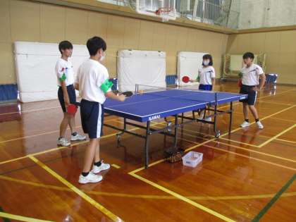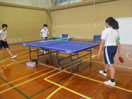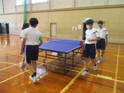 最終日の今日は、すべての活動を終え生徒達みんなで卓球をしてリフレッシュしていました。重い物を運び、倉庫の片づけが大変だったけれど、スポーツを通して利用者の方と仲良くなることができて、うれしそうでした。